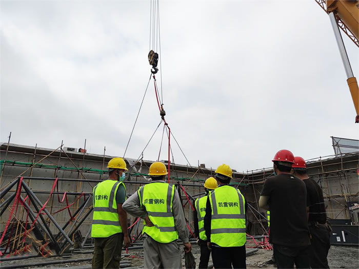 6.为确保.海门加油站球形网架安装顺利,应有详细的海门施工组织设计。网架安装必须保证结构的稳定性和不产生的附加变形。